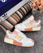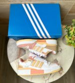 The Adidas Forum Exhibit in pink and yellow is a vibrant and eye-catching variation of the classic Adidas Forum silhouette. Here’s what you might expect from this particular shoe: Color Scheme: The primary colors of this edition are likely pink and yellow, creating a bold and playful aesthetic. The pink and yellow hues may be used on different parts of the shoe, such as the upper, accents, and outsole. Adidas Forum Silhouette: The Adidas Forum is a retro-inspired basketball shoe known for its high-top profile and distinctive strap design across the midfoot. It blends vintage aesthetics with modern comfort features. Premium Materials: Expect the use of high-quality materials such as leather or suede for the upper, providing durability and a luxurious look and feel. The choice of materials may vary depending on the specific color blocking of the shoe. Contrasting Accents: The pink and yellow color scheme may be complemented by contrasting accents, such as white or off-white detailing on the Three Stripes branding, midsole, and laces. These accents add depth and visual interest to the overall design. Adjustable Strap Detailing: Like other models in the Adidas Forum series, the Exhibit likely features an adjustable strap across the midfoot. This strap not only adds a unique aesthetic touch but also provides additional lockdown and support.