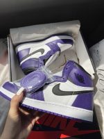 Shop for First copy Nike air Jordan one court purple only on shoeseller.in with trusted and only website for ladies footwear in all india “Step onto the court in style with the Nike Air Jordan 1 Court. These sneakers are a sleek and versatile addition to the iconic Air Jordan 1 lineup. Featuring a clean and classic design with a predominantly white upper, black accents, and the signature Nike Swoosh, they exude timeless elegance. The premium leather construction offers both durability and style, making them perfect for both casual wear and basketball games. Whether you’re hitting the streets or shooting hoops, the Air Jordan 1 Court is a reliable and stylish choice. Elevate your sneaker game with these classic kicks and step out in confidence.”
